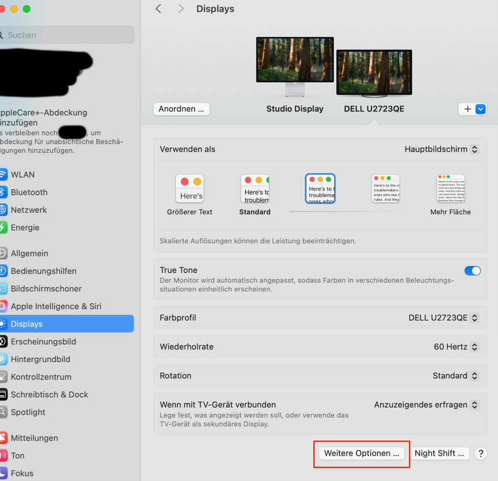Wo werden die Display angezeigt? In den Systemeinstellungen? Mache mal ein Screenshot und stelle diesen hier rein.