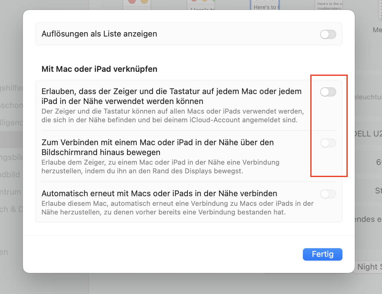 Dann sind aber beide Geräte mit demselben Apple Account angemeldet. Dies dient dazu, dass Du mit einer Tastatur und mit einer Maus auf all Deinen Geräten arbeiten kannst.