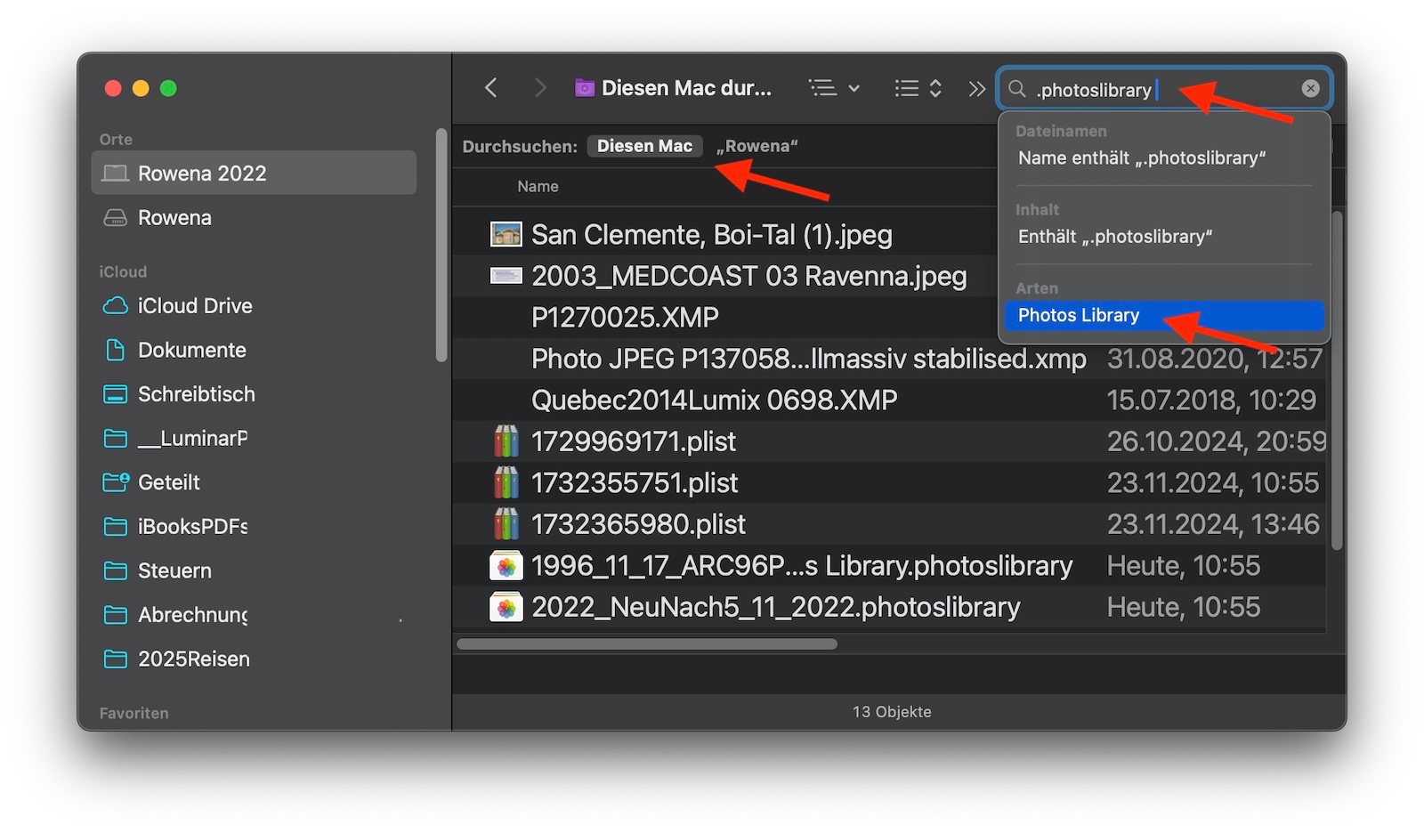 - Tippe ins Suchfeld ".photoslibrary" ein