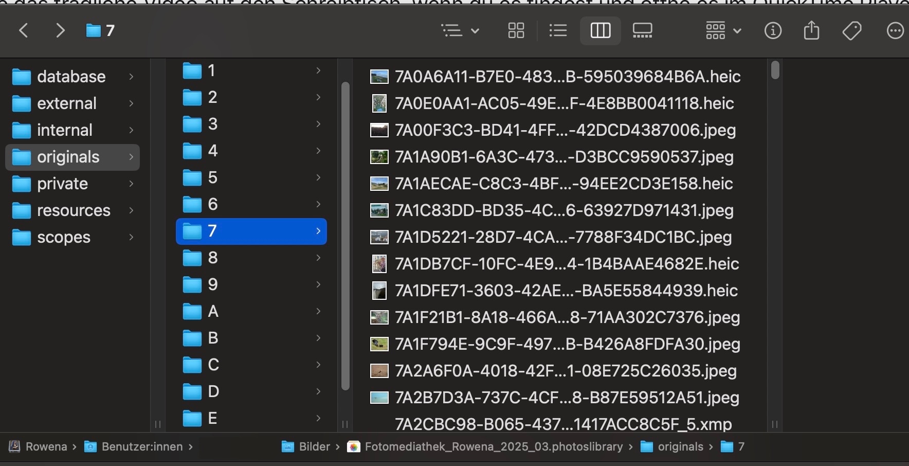 • Im Fenster, das sich öffnet, öffne den Unterordner "originals", dann den Unterordner "7". Dort findest du die umbenannten Originalbände rund Videos, deren neuer Name mit "7" beginnt.