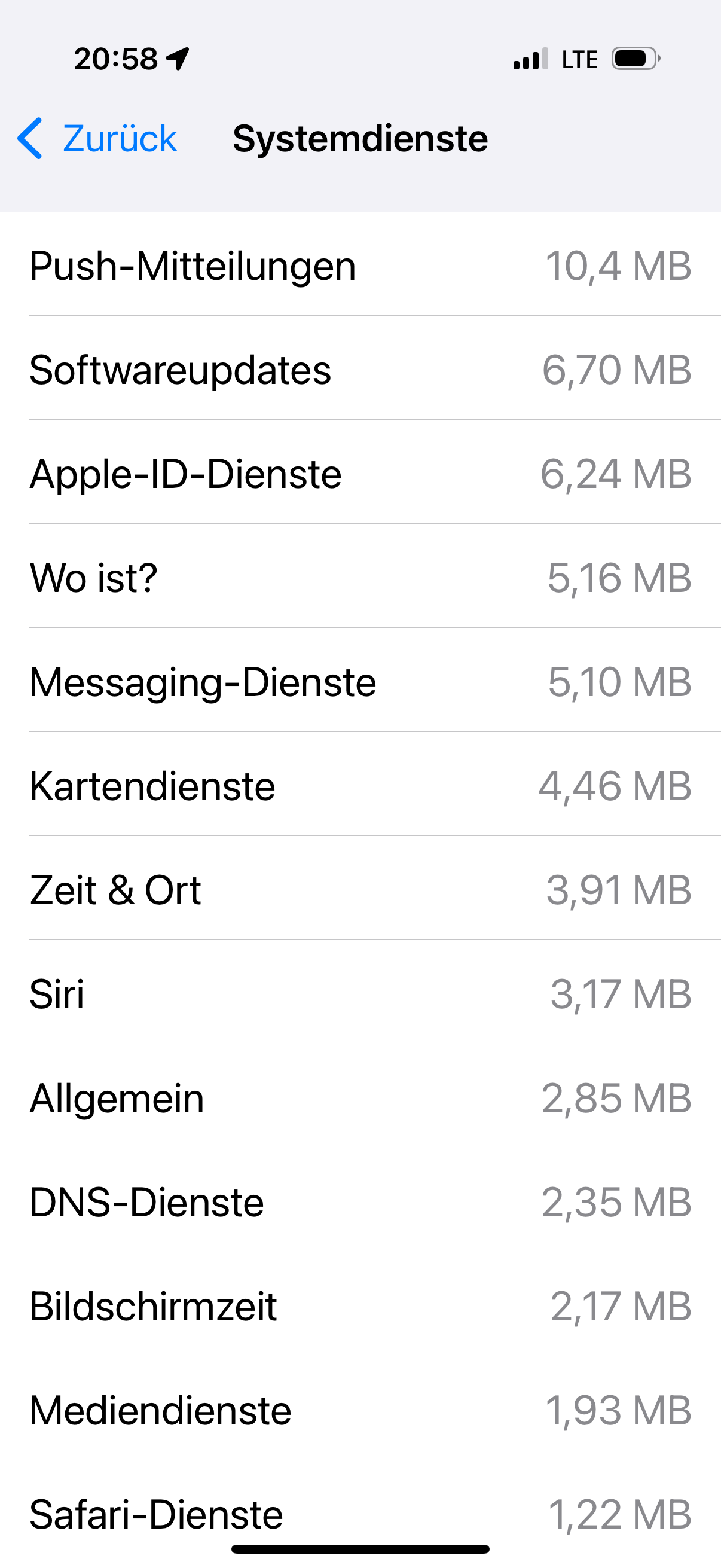 Hallo, ich habe seit letztem Monat das Problem das die Systemdienste/Allgemein das Datenvolumen innerhalb kürzester Zeit lehrsaugen. Ich habe ein iPhone 16Pro mit der aktuellen FW und nutze einen Telekom Vertrag. Letzten Monat (April) wurden innerhalb von einem Tag 5,65GB unter“Systemdienste/Allgemein“ verbraucht. Bis zum Monatsende hatte ich kein Datenvolumen mehr. Seit dem 01.05. habe ich das ganze mal beobachtet. und gestern ging es wieder los. Innerhalb von Minuten wurden ca. 1GB unter „Systemdaten/Allgemein“ verbraucht. Dabei war keine App geöffnet oder aktiv und auch sonnst lief nichts.