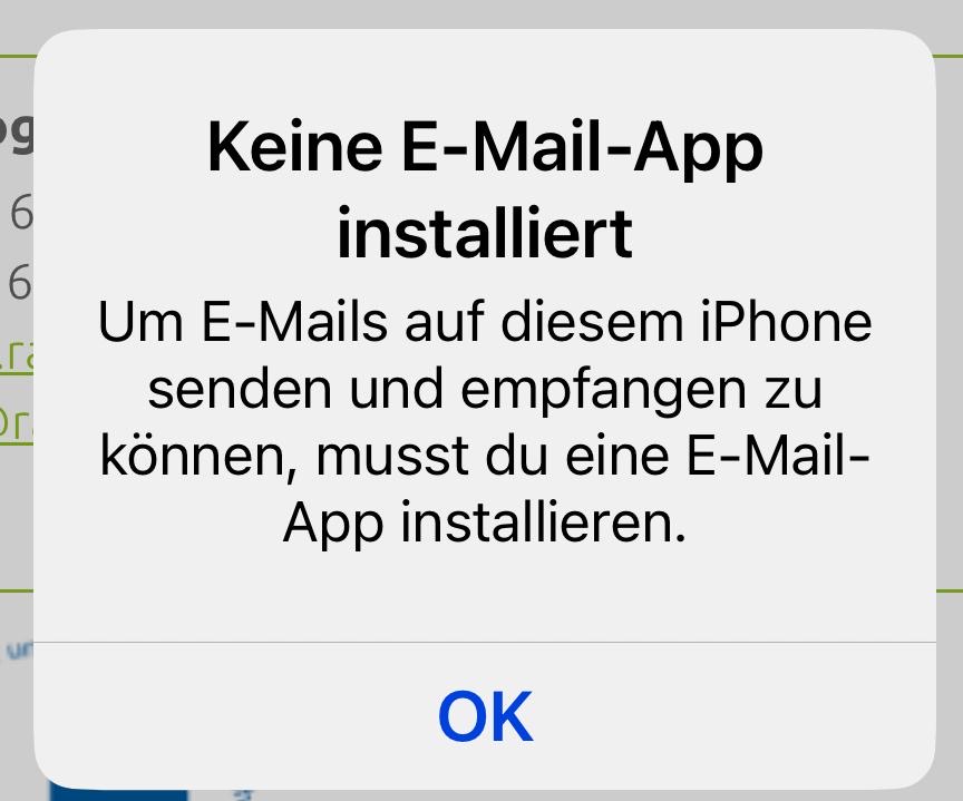 Wenn ich einen Email-Link in einer Website anklicke, dann kommt eine Fehlermeldung: „Keine Email-App installiert“ (siehe Bild anbei). Ich habe das Email-Programm (posteo.de) deinstalliert und neu aufgespielt, ohne positives Ergebnis. Auf dem gleichen Handytyp meiner Frau funktioniert das problemlos (gleiche Email App). Was kann ich machen? Danke für die Hilfe. Gruß, Bernd