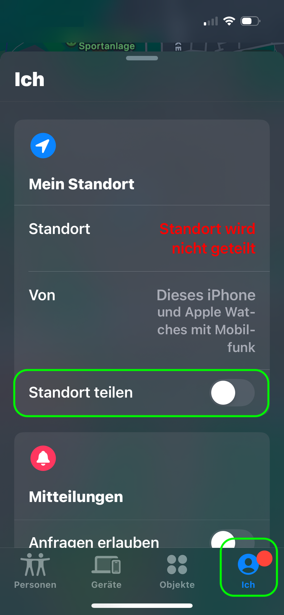 meine Ex Frau hat mein Handy geortet. Das habe ich nur mitbekommen weil ich in den Einstellungen bei wo ist gesehen habe, wie der Regler „Standort teilen“ auf einmal auf Grün war und von selbst wieder auf grau ging.
