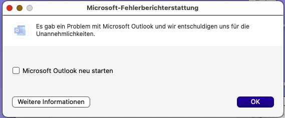 Outlook lässt sich nicht mehr auf dem Mac mini starten unter macOS Sequoia 15.5