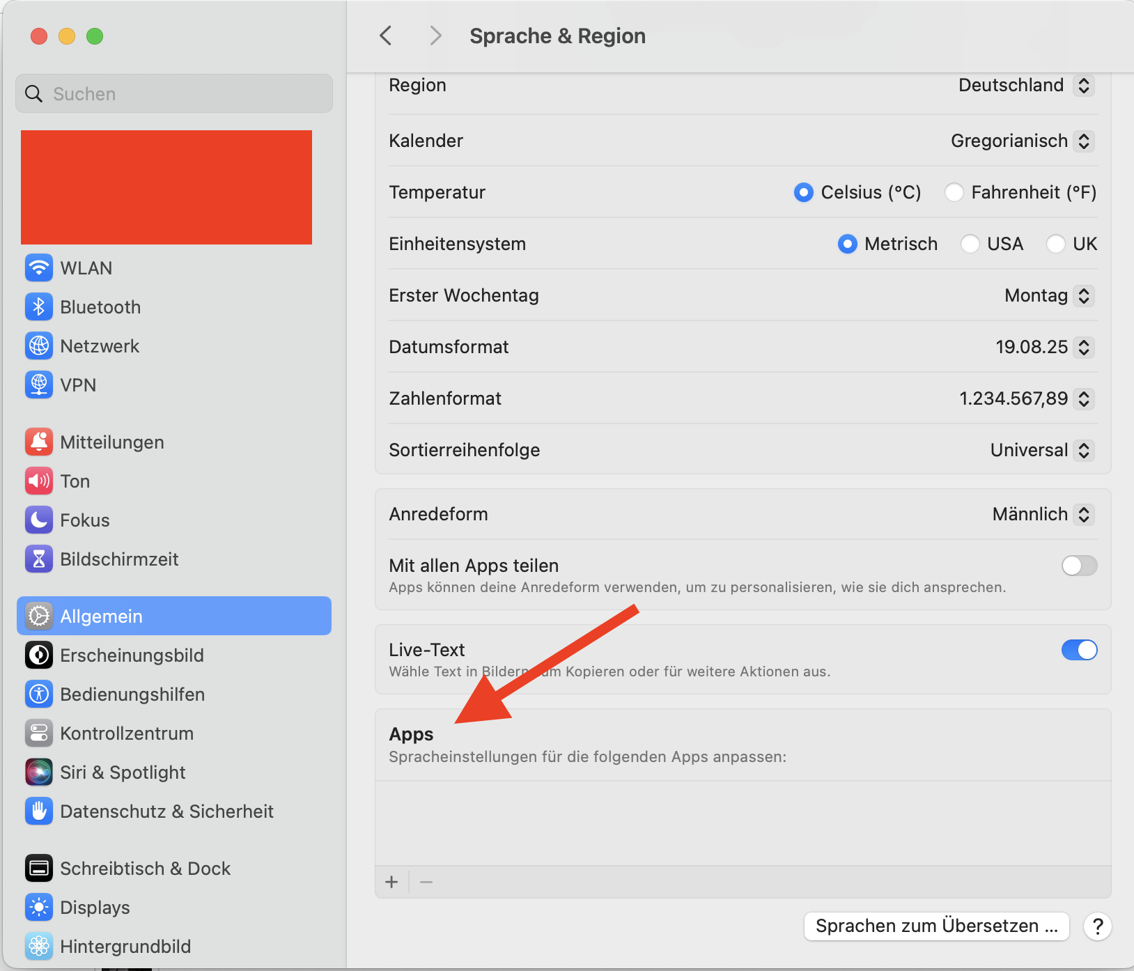 Ich habe zwei Tastaturbelegungen (Eingabequellen) eingestellt, Deutsch und US. Ich kann diese in der Menüleiste oder über die Weltkugel-Taste umschalten. Soweit wäre alles in Ordnung.