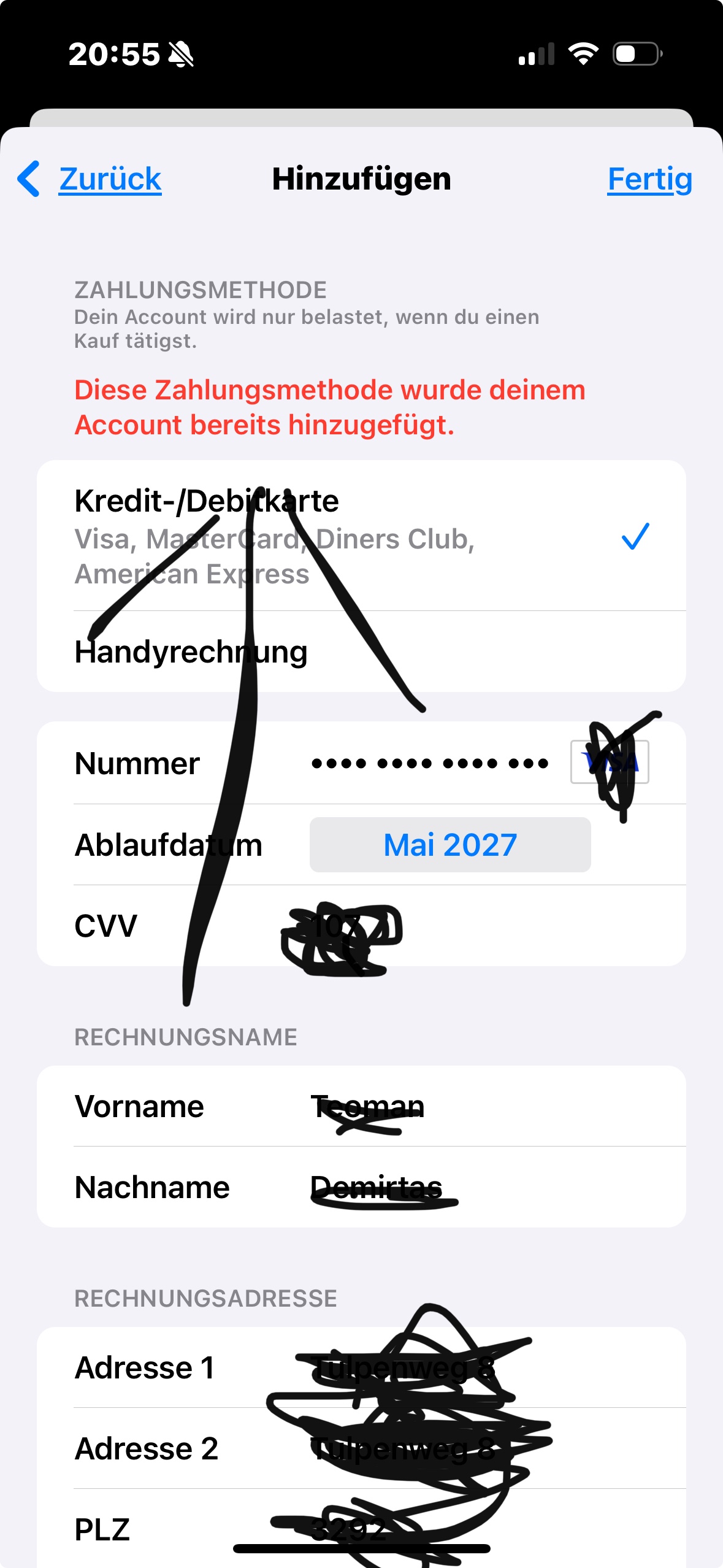 Bank-Karte kann nicht zum Apple Account hinzugefügt werden