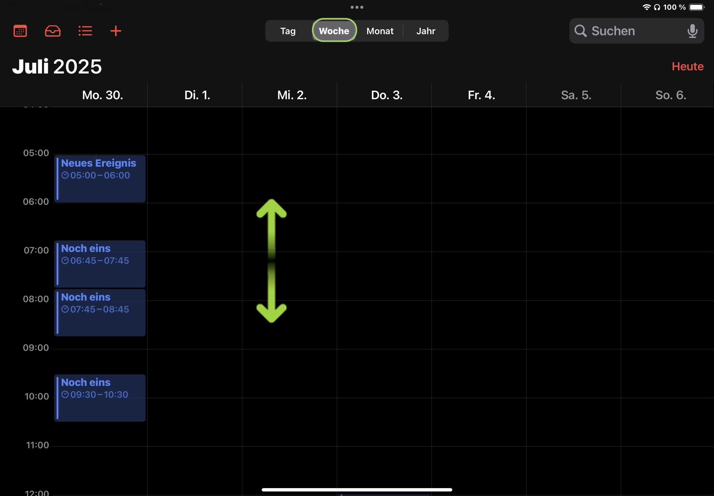 Wischst du in der Wochenansicht weiter nach oben oder unten, kannst zu Zeitspanne über den gesamten Tag einsehen.