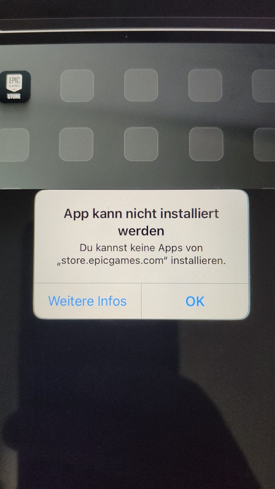Ich habe einem Ipad erworben der 9te Generation mit IPADOS 18.5! Nun versuche Ich den Epic Game Store zu installieren und Ich bekomme immer wieder die Meldung '' DU kannst keine APPS von store.epicgames.com installieren!''
