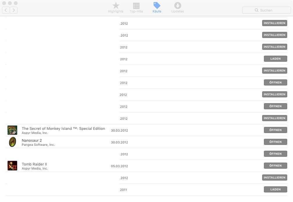 Tomb Raider 2 und Monkey Island aus dem Mac App Store, laufen nicht mehr auf Basis von macOS 10.12.6