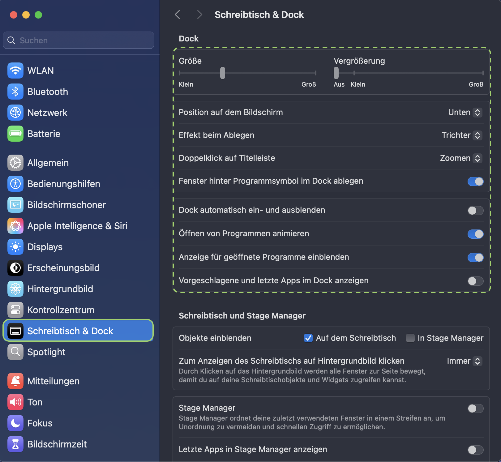 mir reichen die Symbole der im Dock befindlichen Apps. Den Text benötige ich nicht. Er stört den Schreibtischbereich, da ich das Dock linksseitig befestigt habe