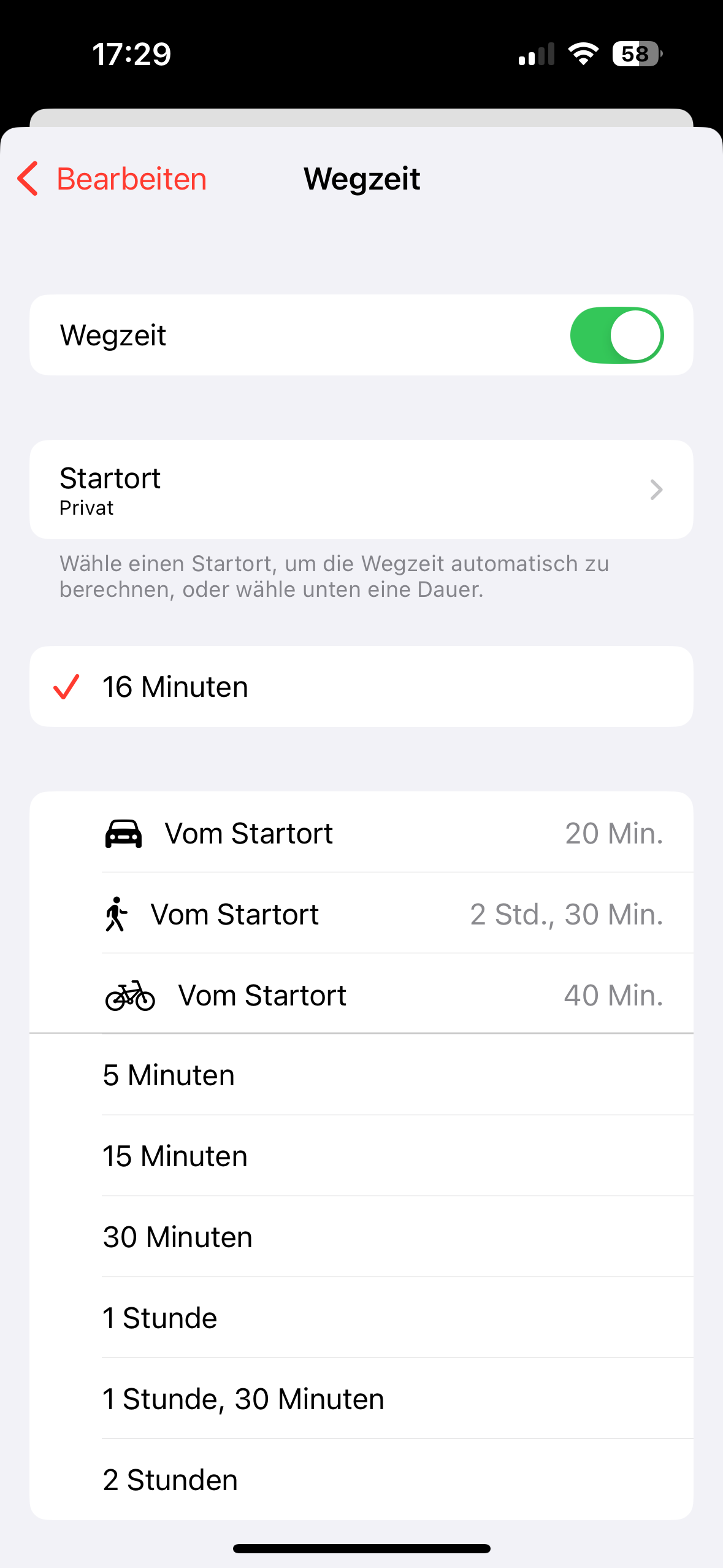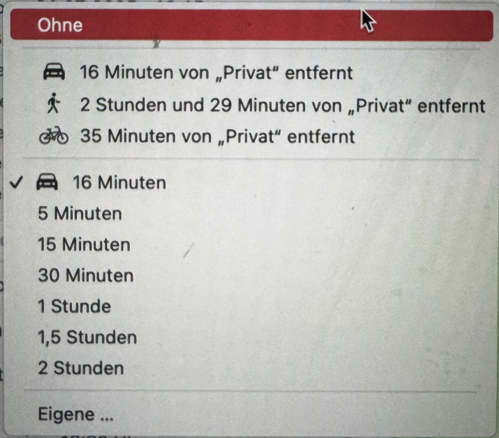 Um 16h folgt ein Termin in meinem persönlichen Kalender. Bei der Ermittlung der Wegzeit greift die App nun den Kalendereintrag meines Sohnes zu.