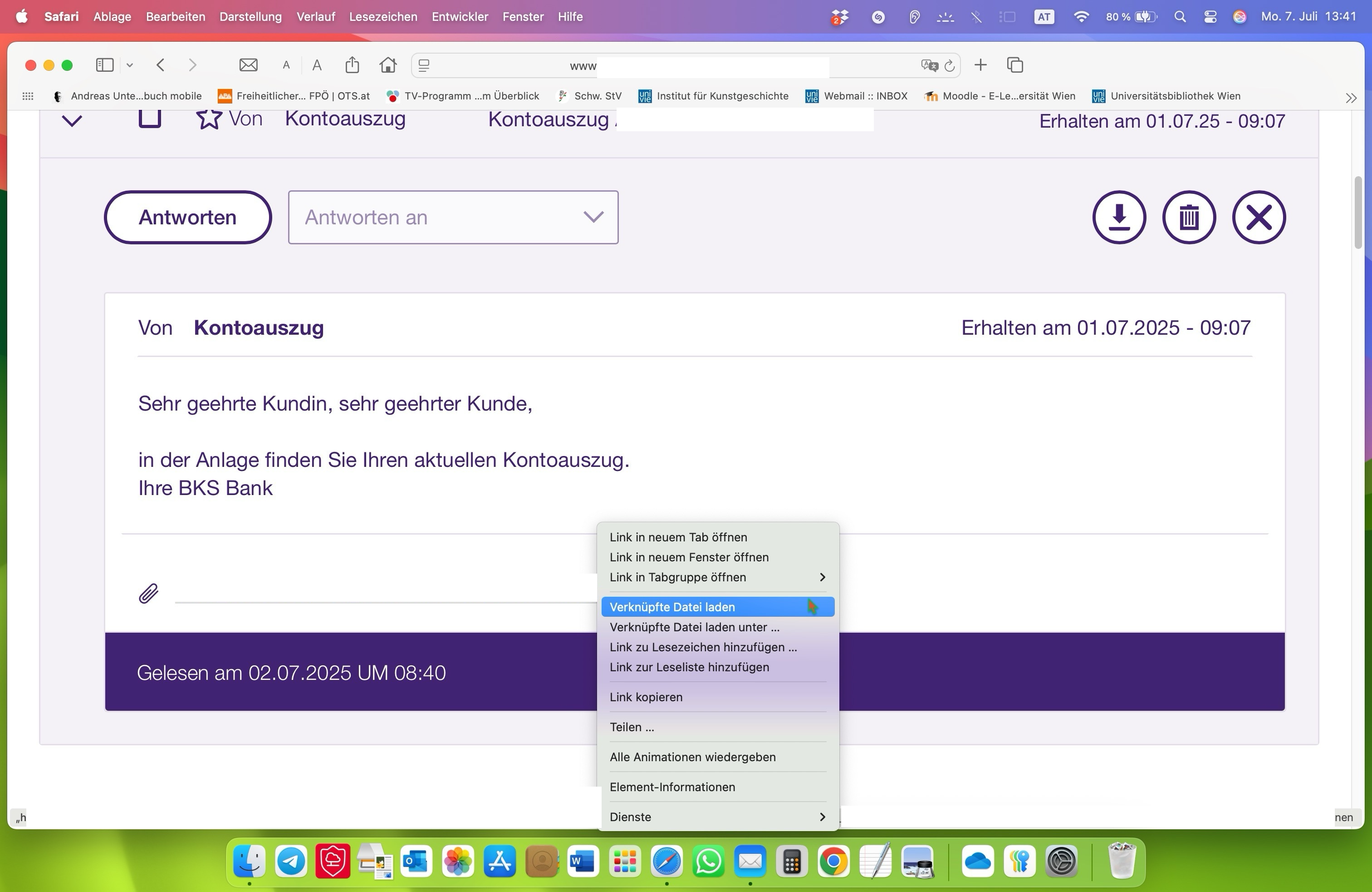 Eine Pdf-Datei, Bankauszug in meinem Bankkonto drinnen, ist nicht zu öffnen.