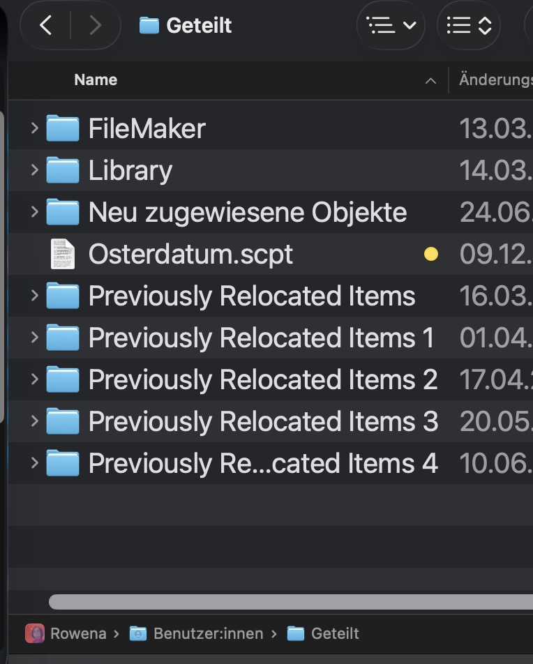Es ist seltsam, Netcracker. Bei mir habe ich die Relocated Items Ordner Ordner auch unter Sonoma bei jedem Update gesehen. Er ist auch nie automatisch verschwunden, sondern es wurden zusätzliche Ordner laufend nummeriert hinzugefügt, mal mit deutschen Namen, mal mit englischem Namen. Und das, obwohl meine Sonoma-Version ein clean-install durch die Genius Bar im Store war - mein MBA musste leider technisch geprüft werden. Sauberer kann das System kaum sein. Ich habe bisher nur die Entwickler-Werkzeuge nachinstalliert und einige wenige wichtige Apps.. Ich frage mich, was den Unterschied ausmacht. Eventuell verhält sich der Mac anders, wenn die Developer Tools installiert sind?