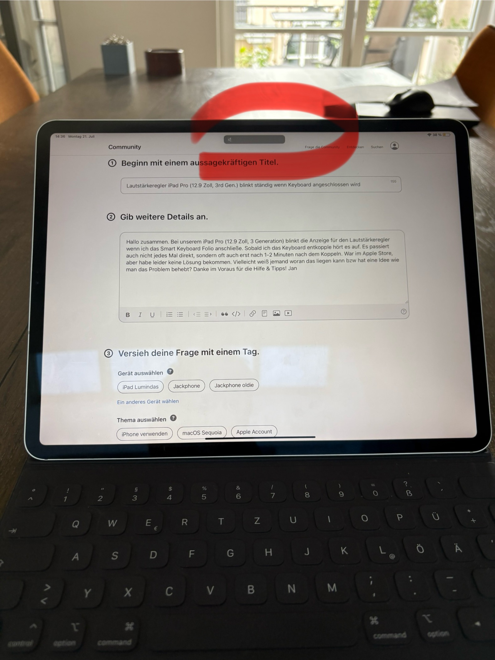 Lautstärkeregler iPad Pro (12.9 Zoll, 3rd Gen.) blinkt ständig wenn Keyboard angeschlossen wird