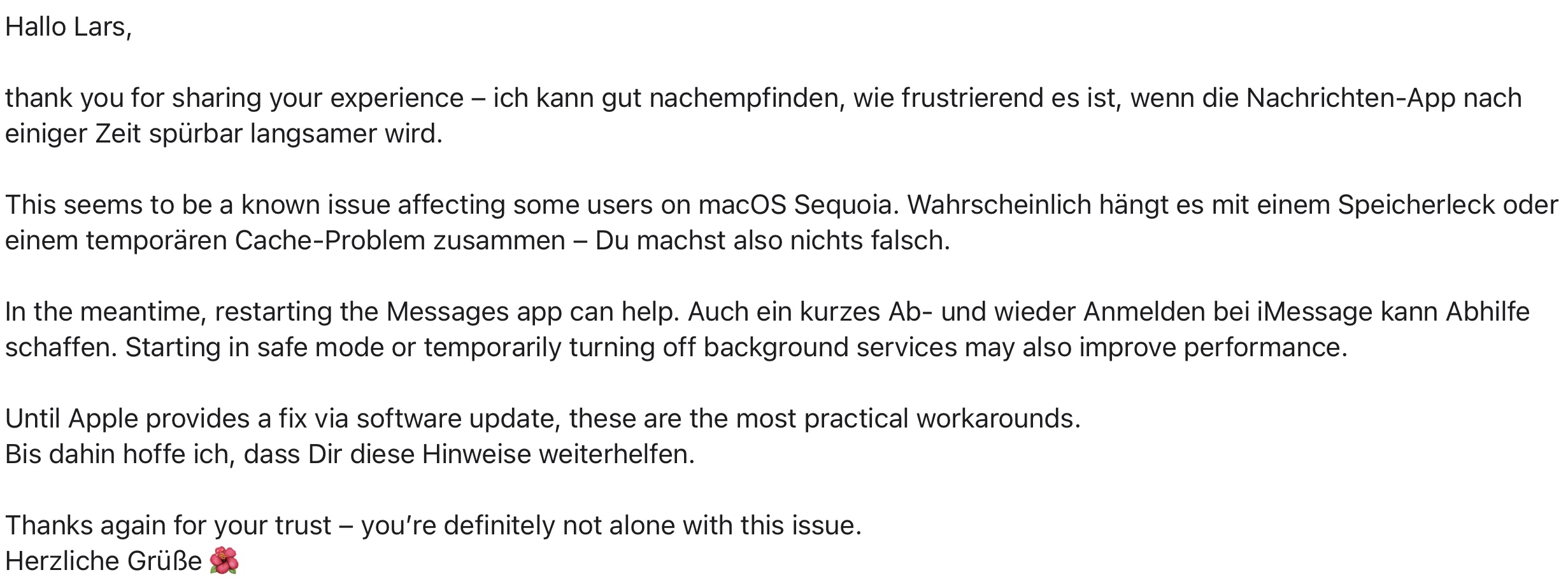 message App reaction time on Sequoia 15 is getting slow after a time with a lot of messages