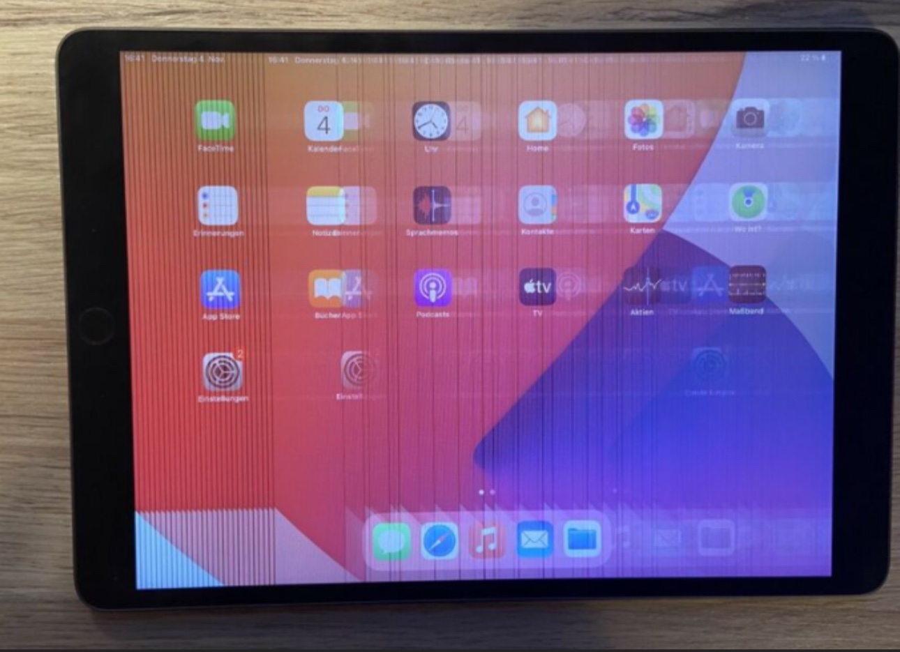 Hallo. Mein iPad Air von 2019 fing ganz plötzlich während der Benutzung an zu zittern und zeigt Streifen und das Bild 3 fach an. Ich hatte es normal in der Hand als es anfing. An dem Tag war ein Software Update. Kann es daran liegen? Auch ein Neustart bringt nichts. Es hat mal für eine halbe Stunde aufgehört und normal funktioniert aber jetzt ist es wieder. (Das bild ist aus dem Netz aber mein Bildschirm sieht genau so aus)