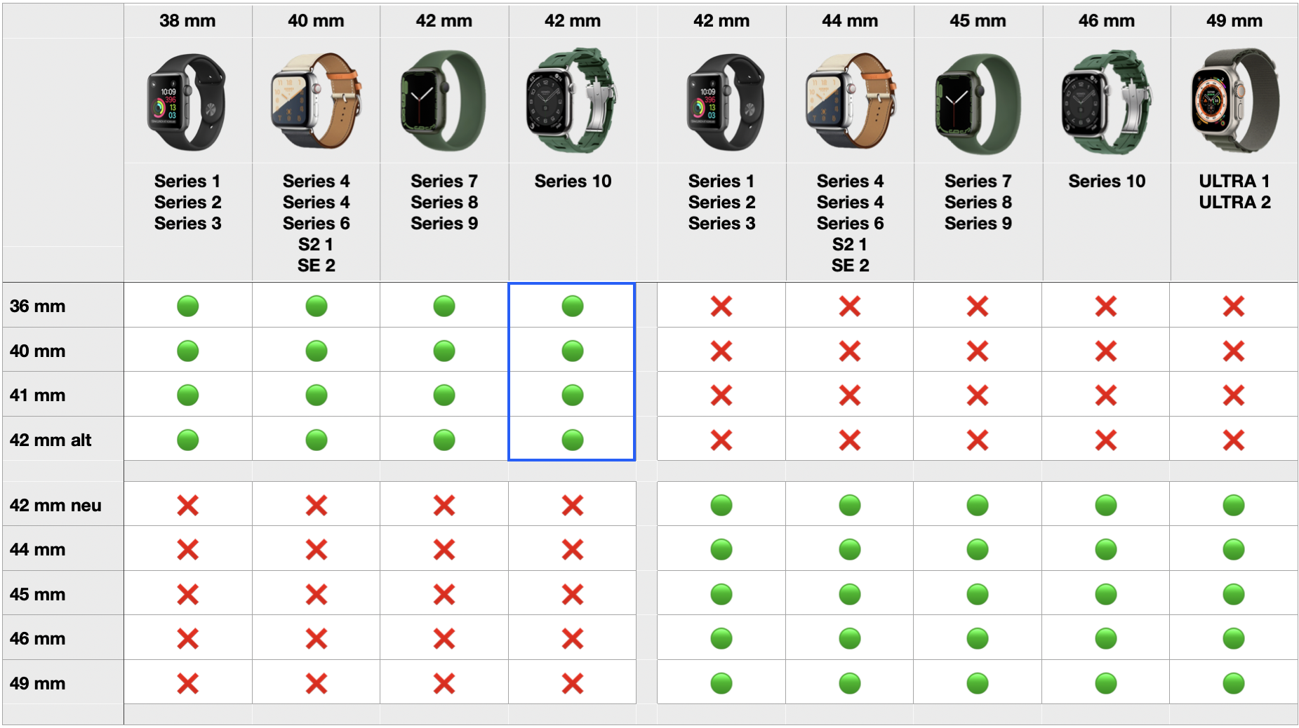 Welche Armband Größen passen auf die Apple Watch 10 / 42mm?