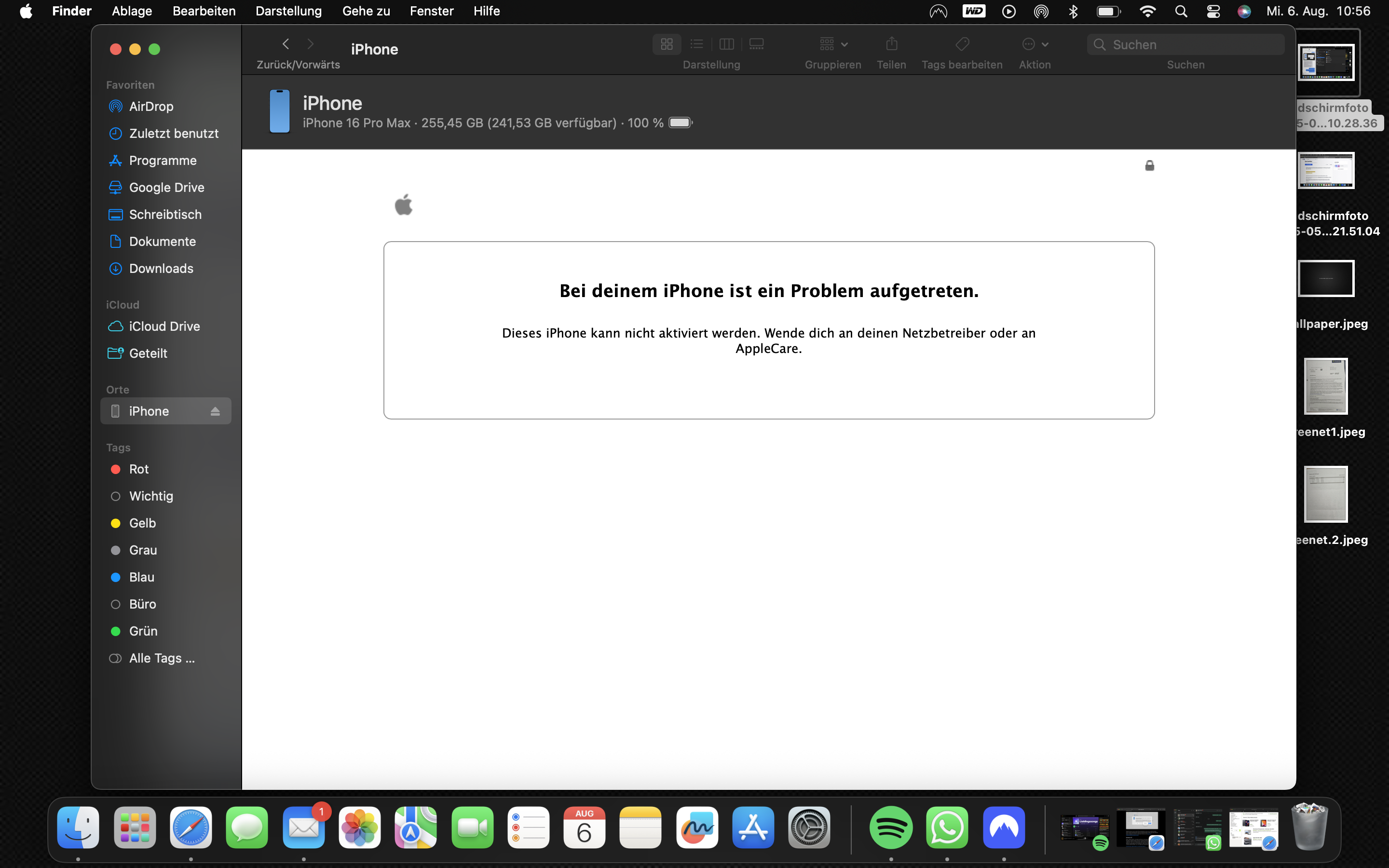 Am Samstag habe ich direkt mit dem Apple Support telefoniert. Man riet mir, das iPhone aus der iCloud zu entfernen. Das habe ich getan, seitdem steht in der Cloud, dass es erst am 01.09.2025 entfernt wird. Ich habe das iPhone mehrfach zurückgesetzt und wiederhergestellt, ohne Erfolg. Zwischendurch konnte ich immerhin noch einige Bilder sichern.