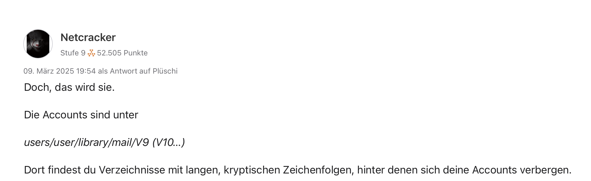 Ich nutze mails für meinen GMX-Account. Bisher konnte ich meine älteren mails mit unbegrenzter Dauer aufrufen, unabhängig davon, ob sie in meinem Postfach bei GMX noch vorhanden waren. Plötzlich synchronisiert mails die Aufbewahrungsdauer mit GMX und alle älteren mails verschwinden nach 6 Monaten (meine Einstellung bei GMX). Ich habe nichts verändert und bei mails wie immer "Löschen : nie" ausgewählt.