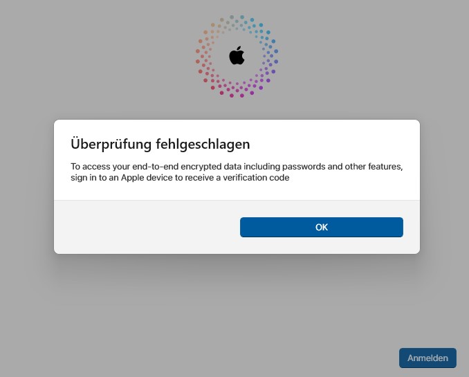Apple Account kann nicht bestätigt werden um vom PC Zugriff auf iCloud zu haben