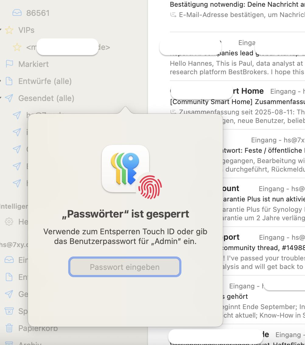 Auf meinen MacBook Air M1 Seqouia 15.6 taucht ohne ersichtlichen Grund in unterschiedlichen Apps und Ansichten irgendwo das Popup für Apple Passwort auf und muss erst mit der Escape Taste zum Verschwinden gebracht werden.