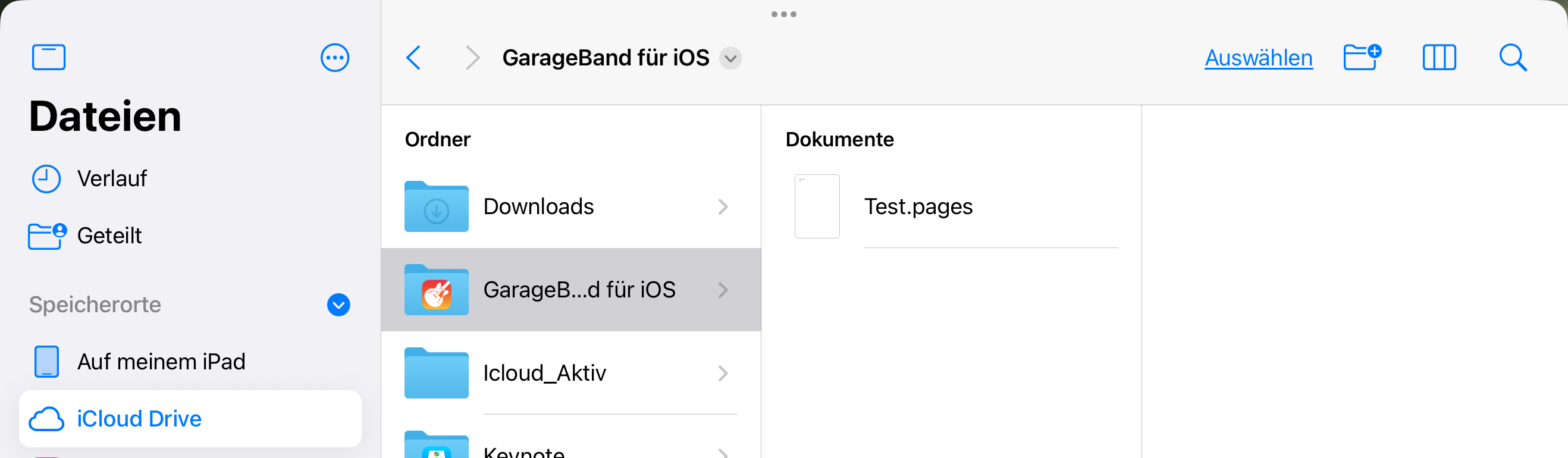 Erstelle ich ein neues Page Dokument, dann wird es in meinem GarageBand System Ordner in der iCloud automatisch gespeichert. Auch wenn ich die App GarageBand lösche, das Programm benötige ich nicht, und den zugehörigen System Ordner für GarageBand, dann lösche, wird bei erneuter Speicherung eines Dokuments unter Pages der GarageBand Ordner wieder automatisch erzeugt und die Datei dort hinein geschrieben.