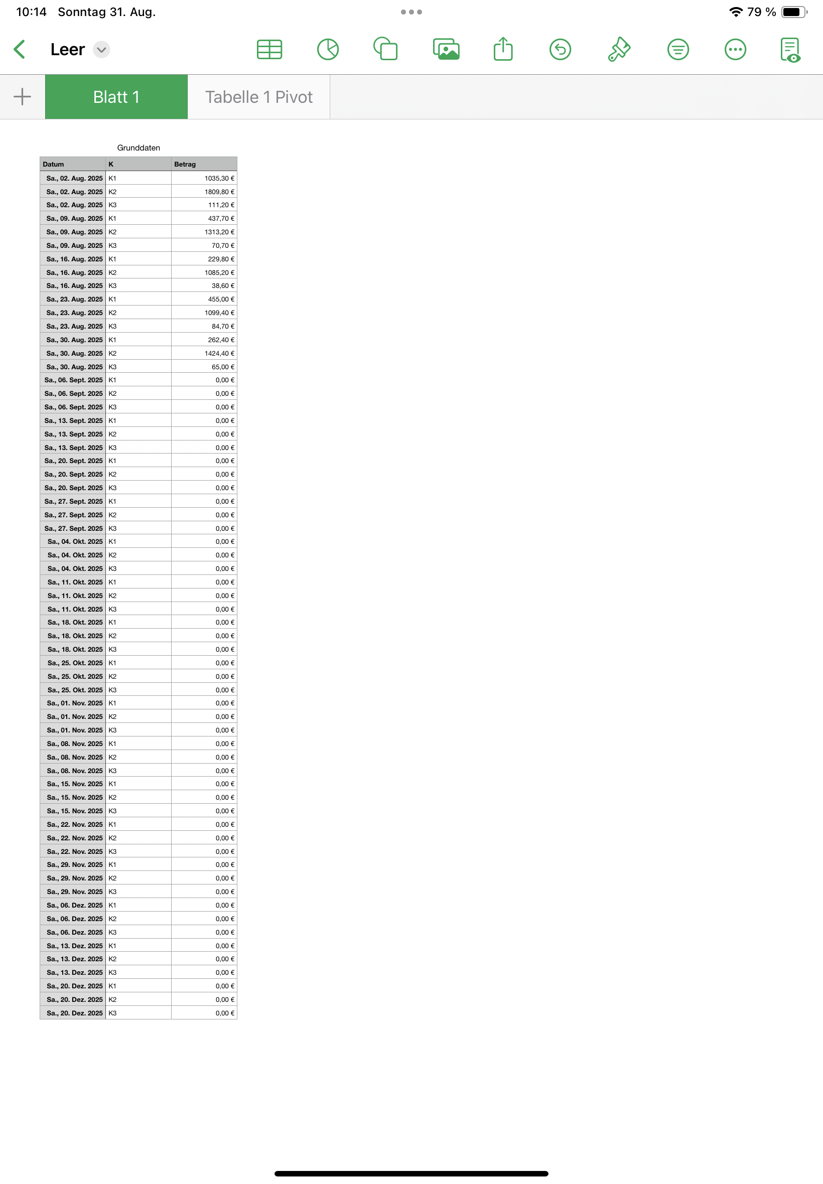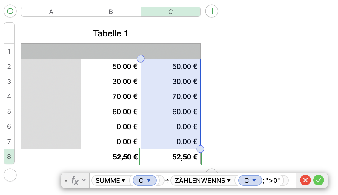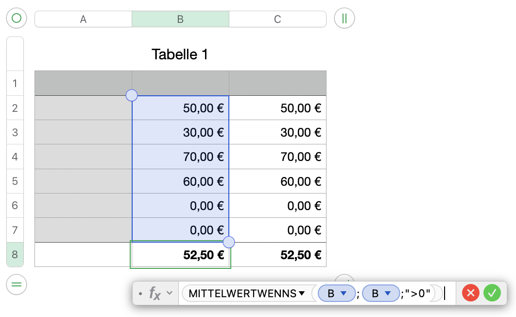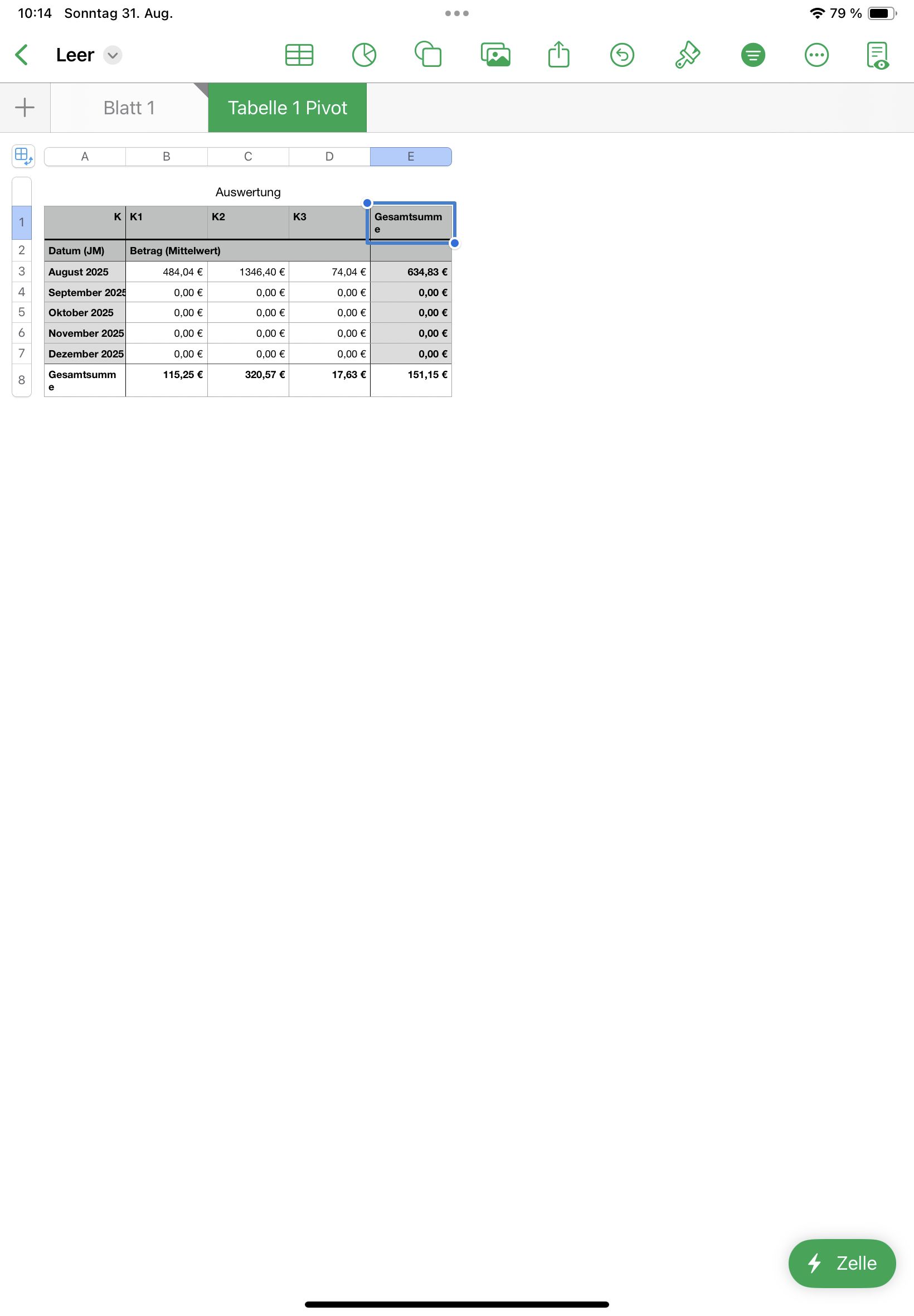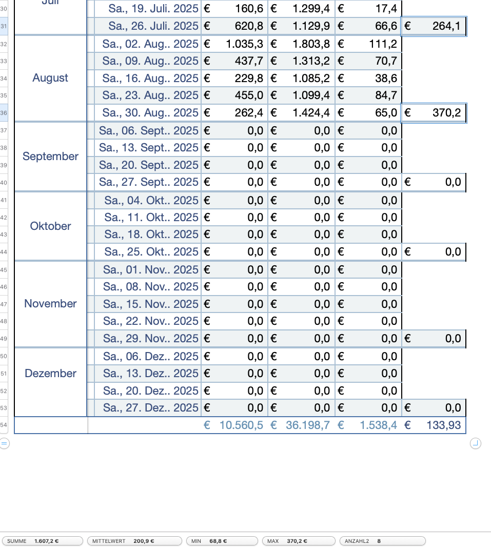 Bis einschließlich August ist der Mittelwert siehe ganz unten in der Infoleiste 200,9 € und den hätte ich