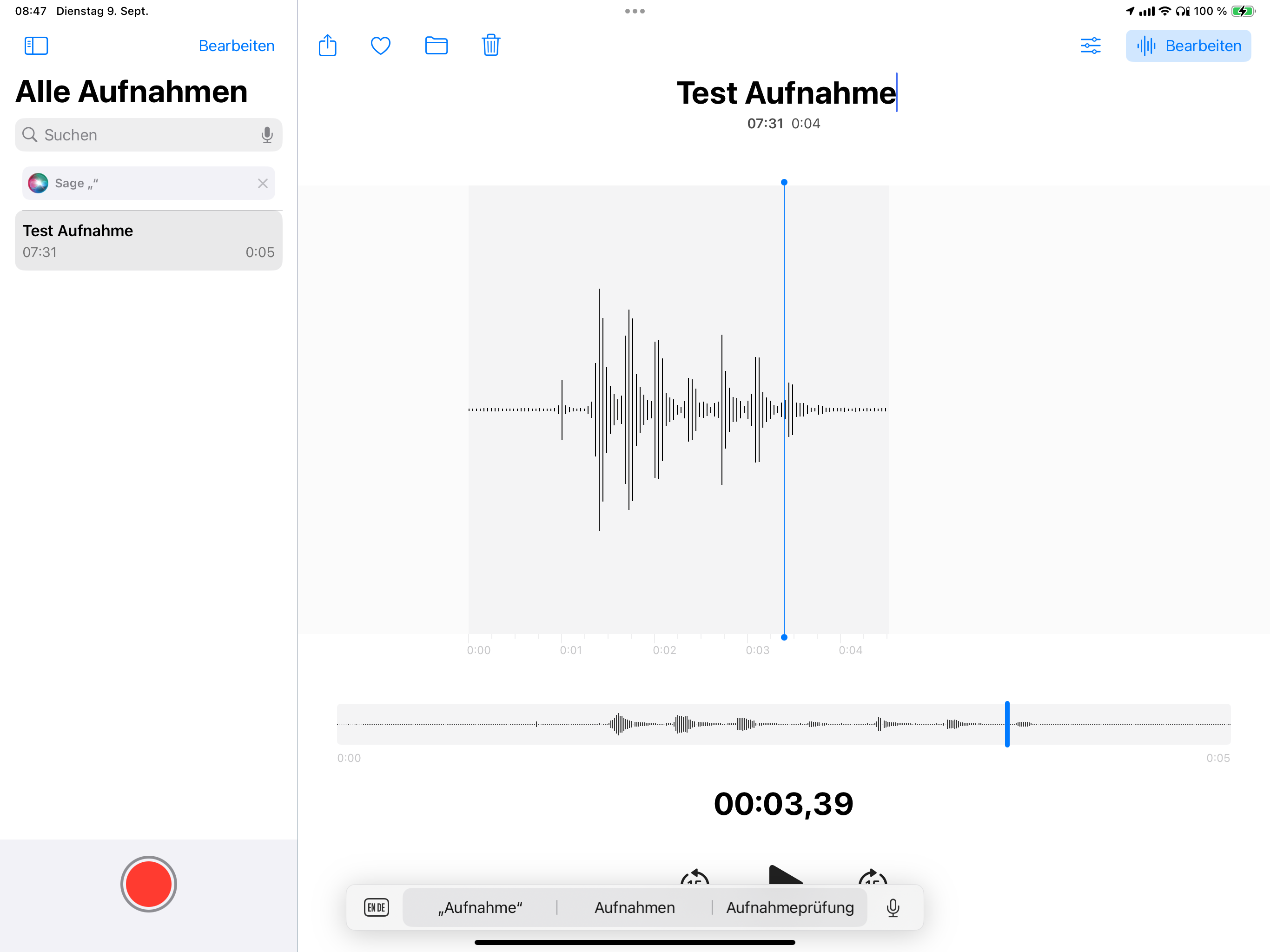 Aufnahme mit der App „Sprachmemos“ auf dem iPad wiedergeben