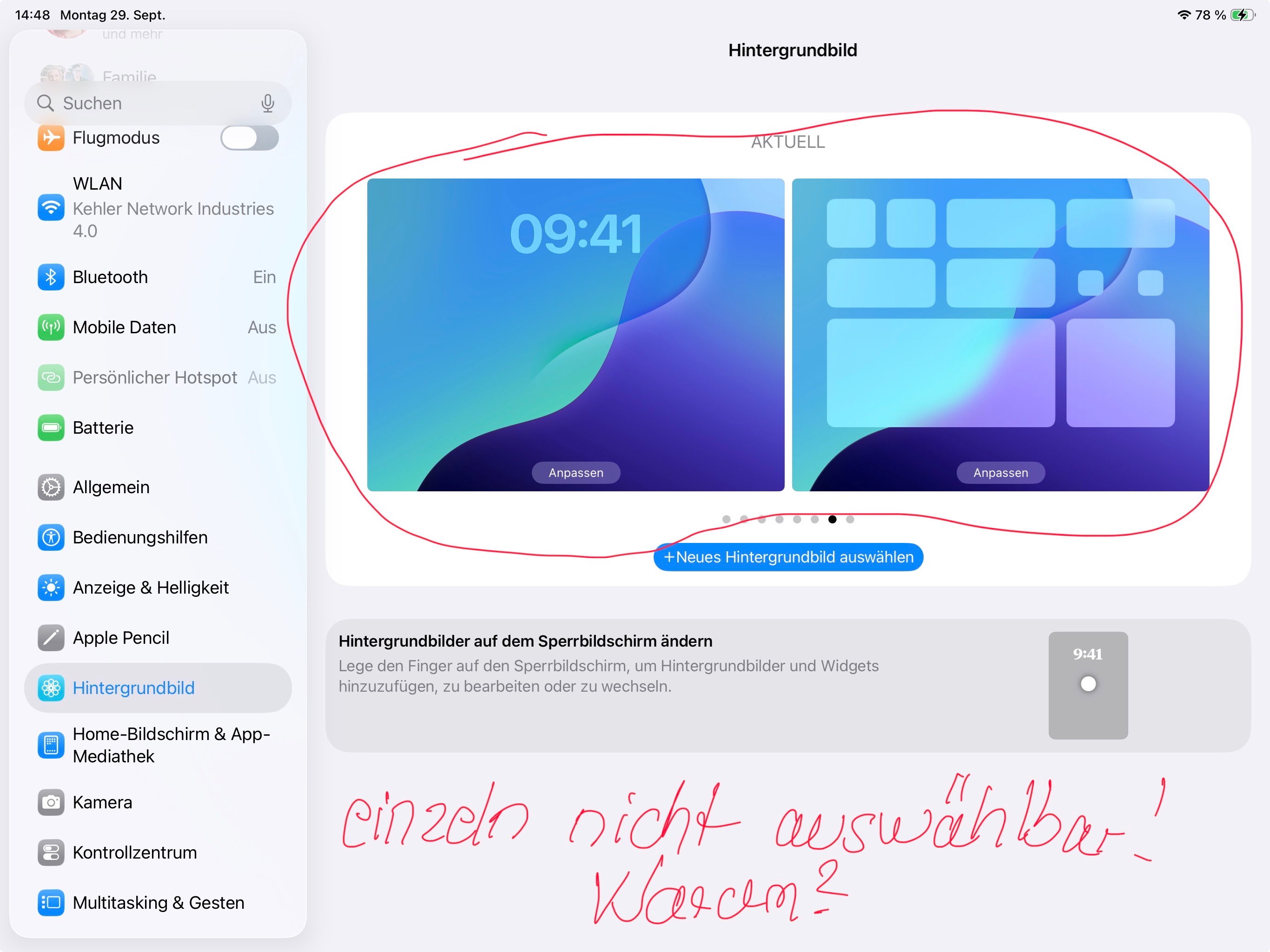 Hallo, ich möchte die neuen iOS 26 Hintergrundbilder für meinen Homebildschirm verwenden. Für den Sperrbildschirm möchte ich aber meine eigenen Bilder. Wie kann ich das bewerkstelligen? Ich kann natürlich im Sperrbildschirm die Hintergründe auswählen. Ich kann die iOS 26 Hintergrundbilder, aber nur für den Sperrbildschirm und für den Homebildschirm gemeinsam auswählen. Nur für den Homebildschirm bringe ich es nicht zu Stande. Ich kann zwar auf dem Homebildschirm Fotos auswählen, aber nur die eigenen. Die iOS 26 Hintergrundbilder werden dabei nicht angezeigt nur wenn ich den Sperrbildschirm ändere, kann mir einer das erklären? Apple wird immer komplizierter und immer mehr zu Android. Das finde ich sehr frustrierend.