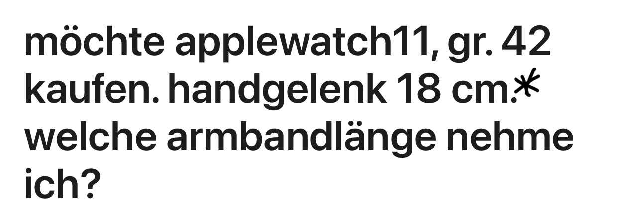 möchte applewatch11, gr. 42 kaufen. handgelenk 18 cm. welche armbandlänge nehme ich?Habe bisher applewatch6, Gr. 44, mit M/L-Armband