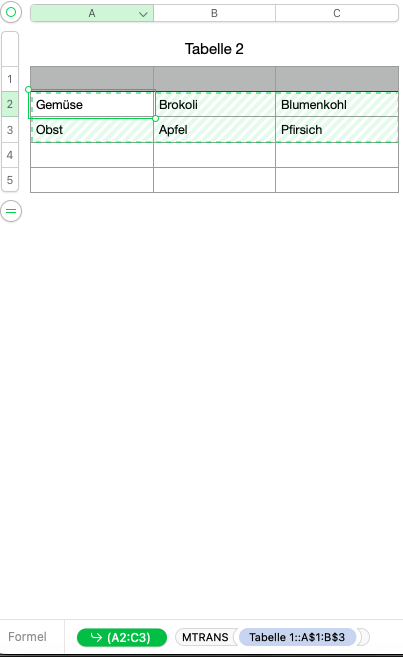 Numbers: Zellen einer Zeile in eine Spalte übertragen