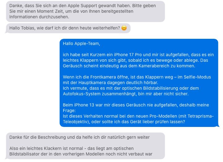 vielen Dank für Deine aufklärende Thematisierung und für die Bereitstellung der Apple Support-Kommunikation. Deine Aufmerksamkeit – vielleicht auch Deinem guten Gehör geschuldet – ist wirklich beeindruckend.