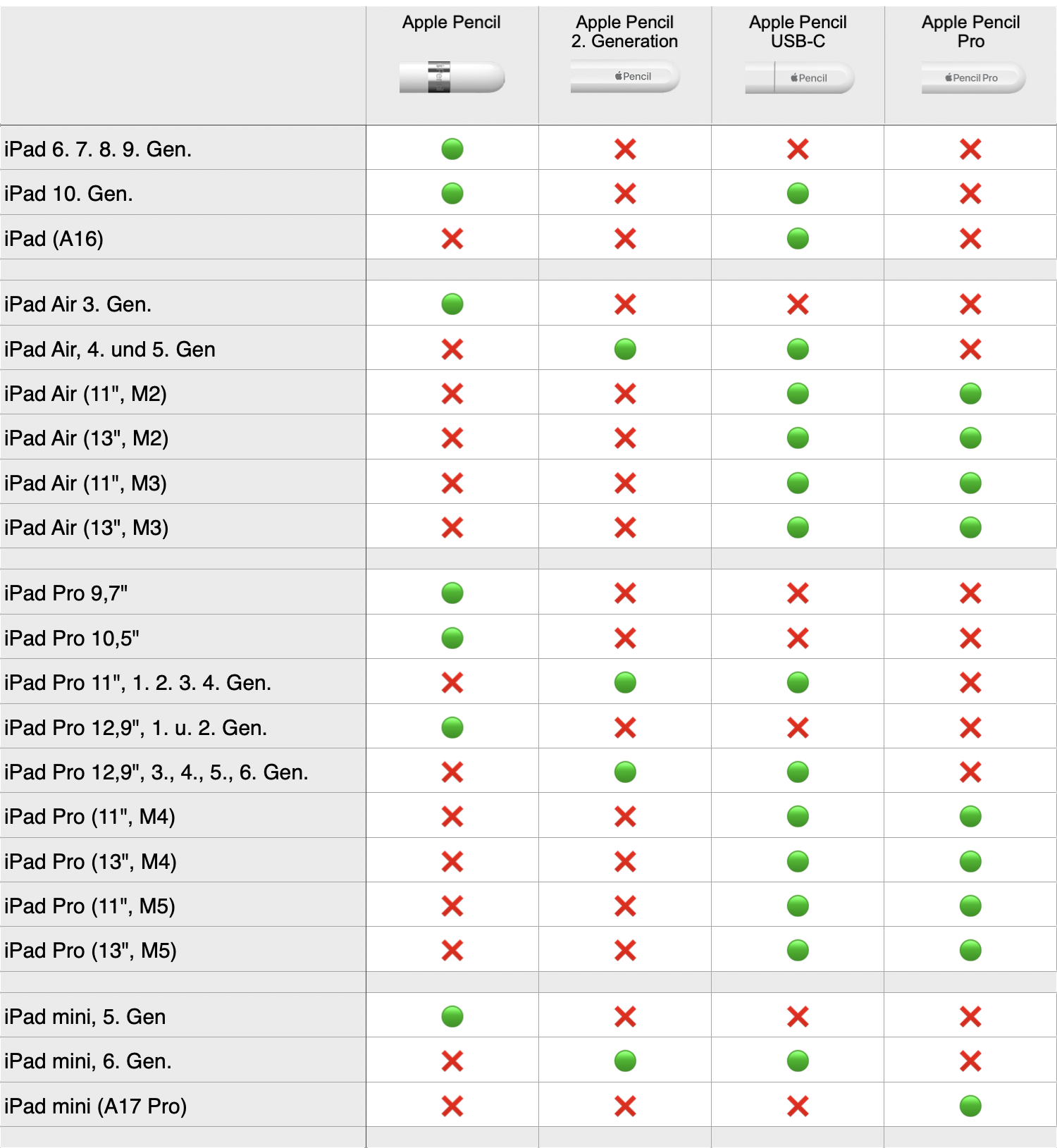 ich habe ein neues iPad Pro (M5) bekommen. Den Pencil (2) habe ich schon mit meinem alten iPad genutzt und es hat wunderbar funktioniert. Er koppelt sich jetzt aber nicht mit dem Neuen. Ich habe schon versucht das iPad neuzustarten, mit dem Pencil dran neuzustarten, den Pencil beim alten iPad zu ignorieren, in der Hoffnung, dass es dann besser funktioniert, aber nichts geht. Das Einzige was mir auffällt, dass der Pencil relativ schlecht an der Seite vom neuen iPad hält.