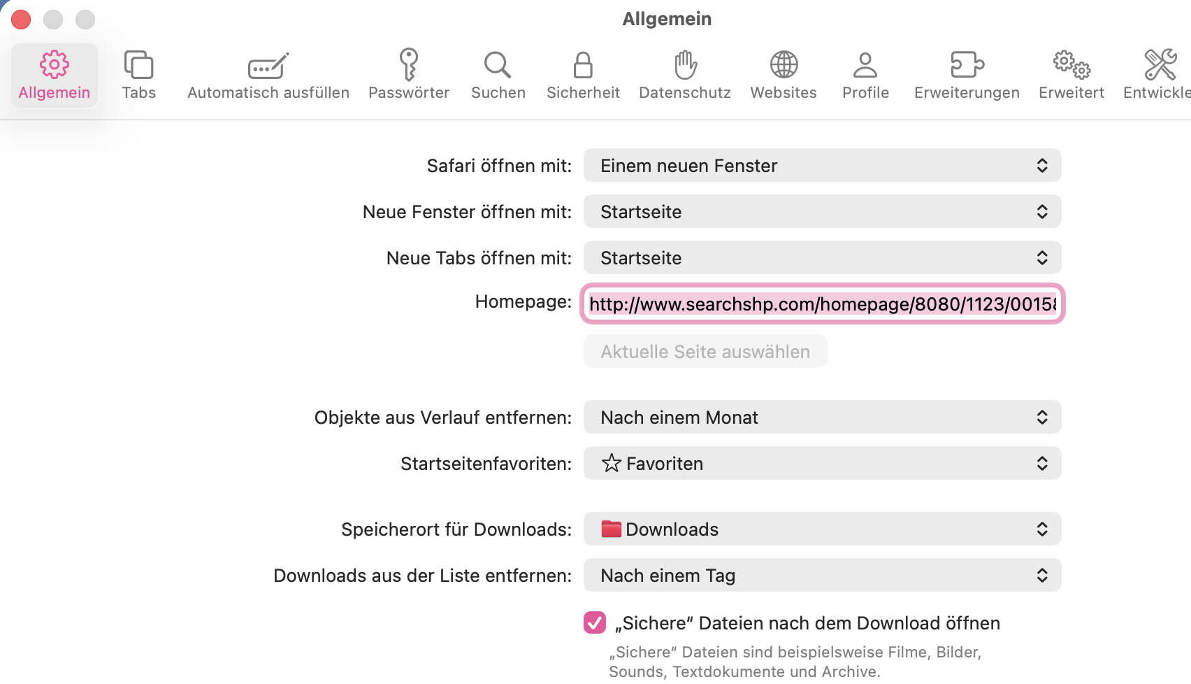 zu Corona0769: "ZielordnerNull" würd ich gern verstehen. Ich füge mal einen Screenshot bei: SAFAR/Einstellungen/llgemein