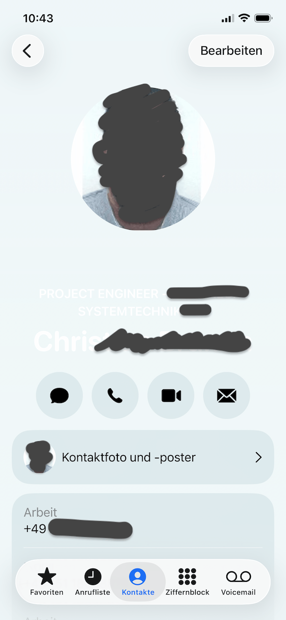 IOS26.1 - Helles Poster bei Kontakten macht Titeltext weiß auf weiß