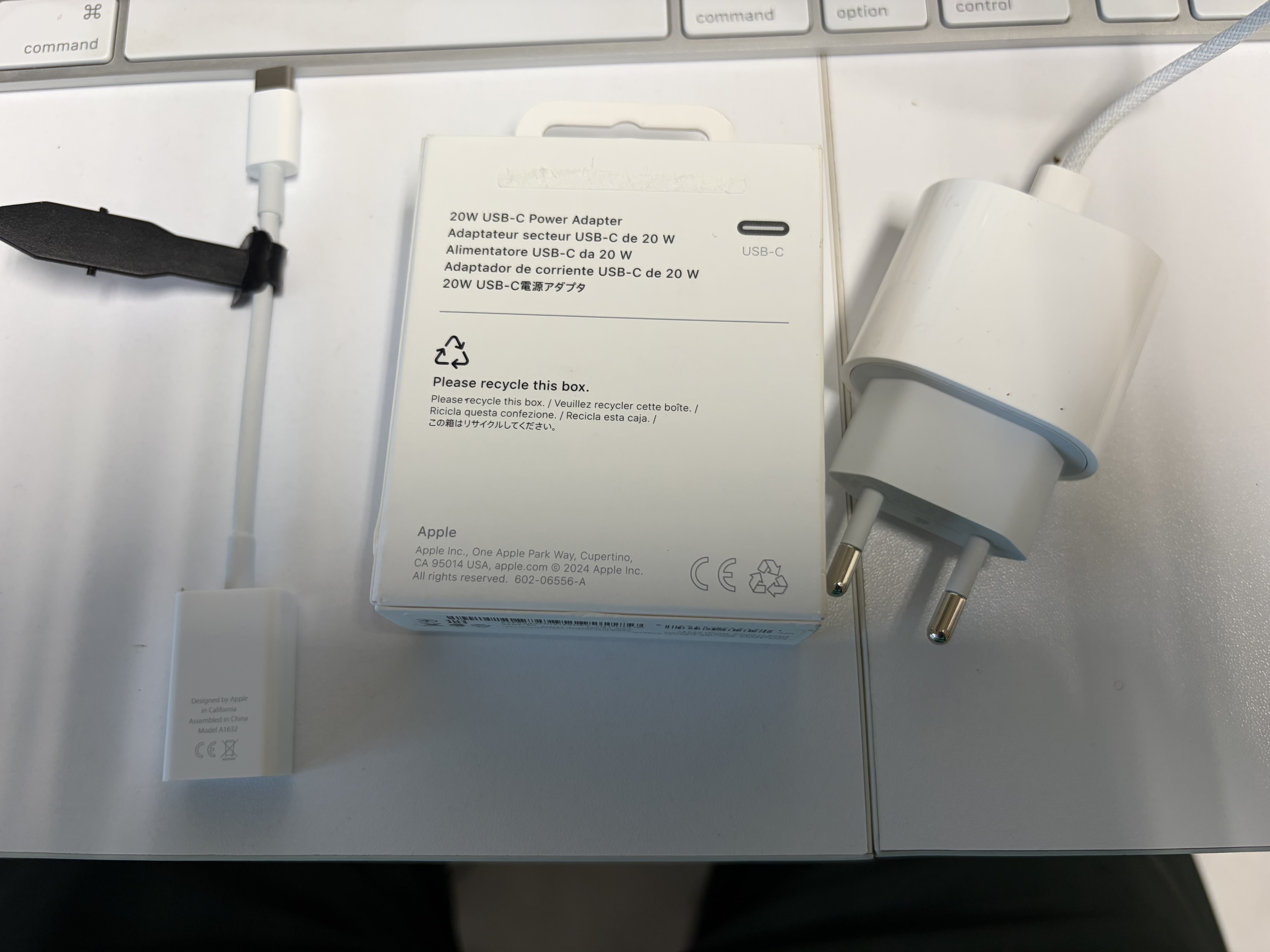 Du hast jetzt ein Ladegerät (aka "Adapter") mit USB-C-Ladeanschluss (rechts), das linke ist ein USB-A auf USB-C-Adapter.