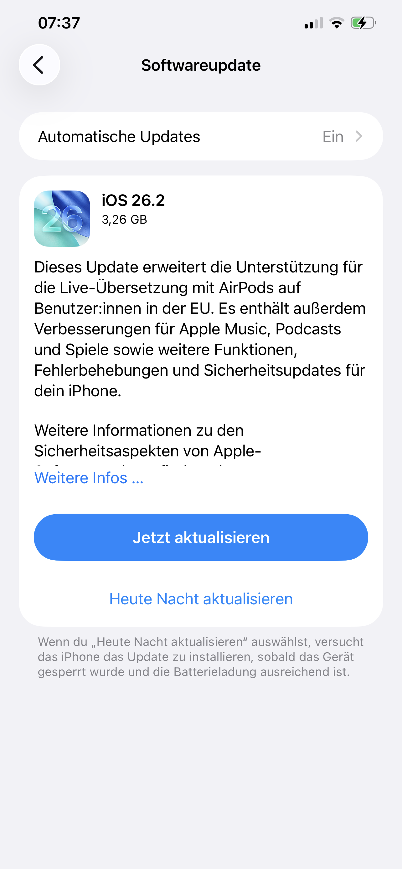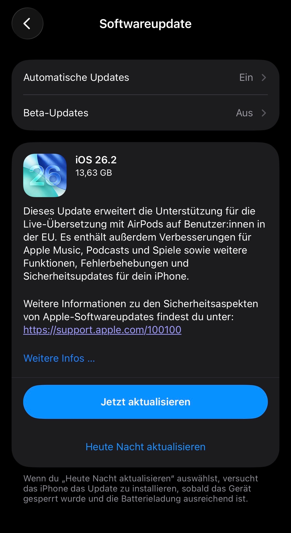 IOS 26.2 über Nacht durchgelaufen.
