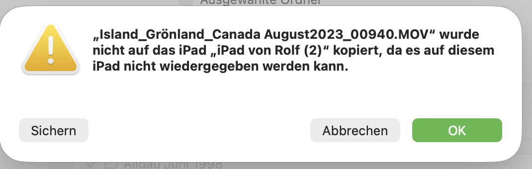 und aufgrund der Datenmenge mittels Kabel an das iPad übertragen. Und hierbei erhalte ich je
