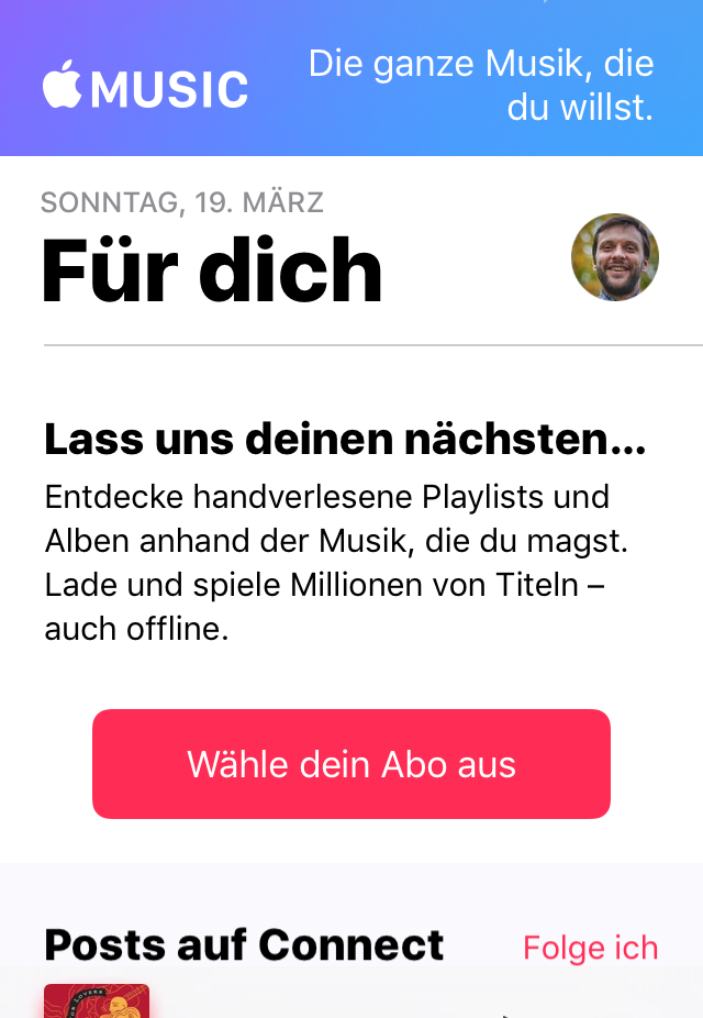 Da ich momentan kein Apple Music abonniert habe, erscheint nur der der