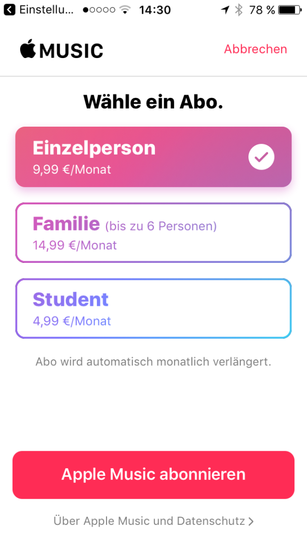 Ich sehe mein Apple Music Abo nicht!
