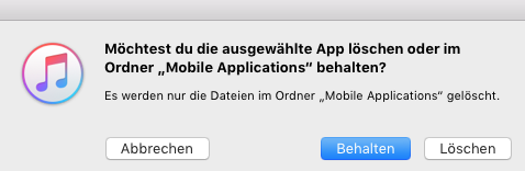 - Muss ich diese 100 Apps in meiner Mediathek vorhalten oder könnte ich diese auch gefahrlos aus der iTunes Mediathek löschen ohne das die Apps auch vom iPhone gelöscht werden?