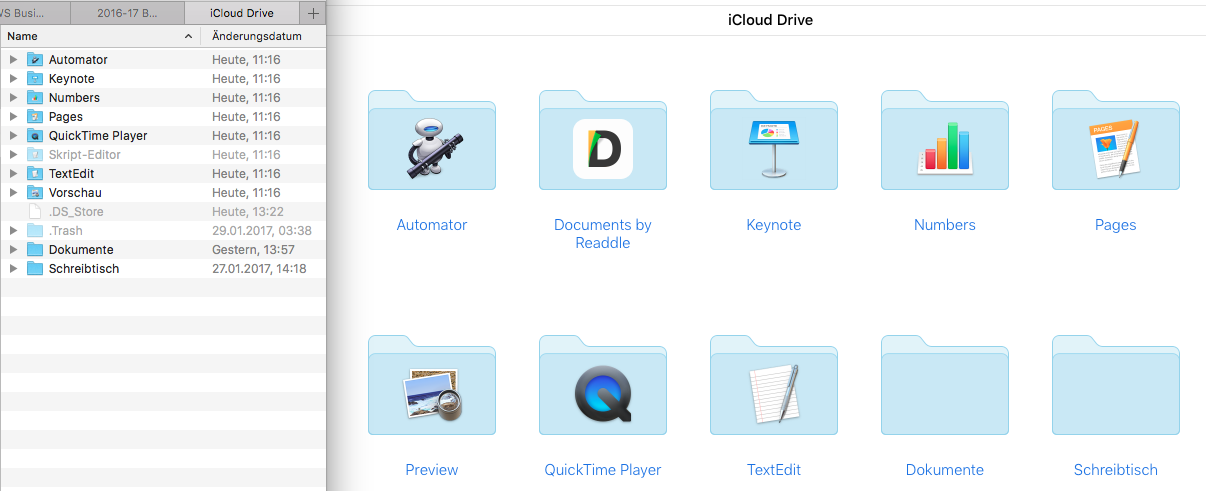 Dieser Ordner wird auf icloud.com als "Documents by Readdle" angezeigt und ist vollständig zugänglich.