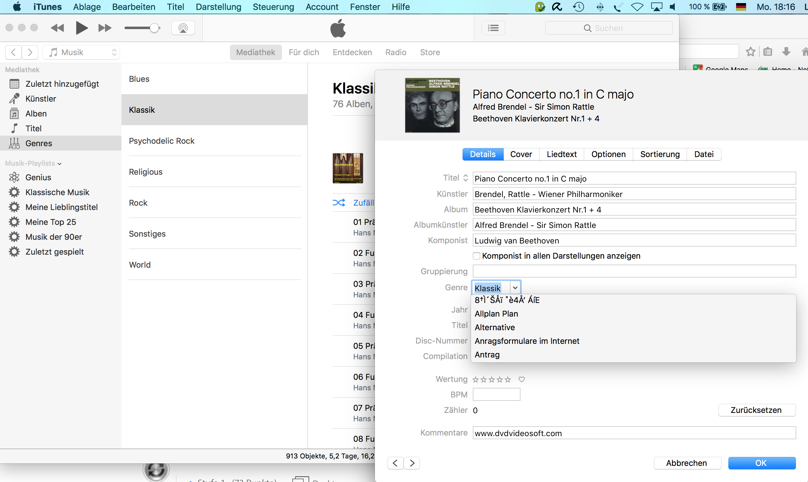 Eine andere mögliche Quelle für falsche Genres sind Bücher und Audio Bücher, die mit iTunes synchronisiert wurden. Die Schlagworte der Bücher werden gelegentlich als Genre interpretiert.