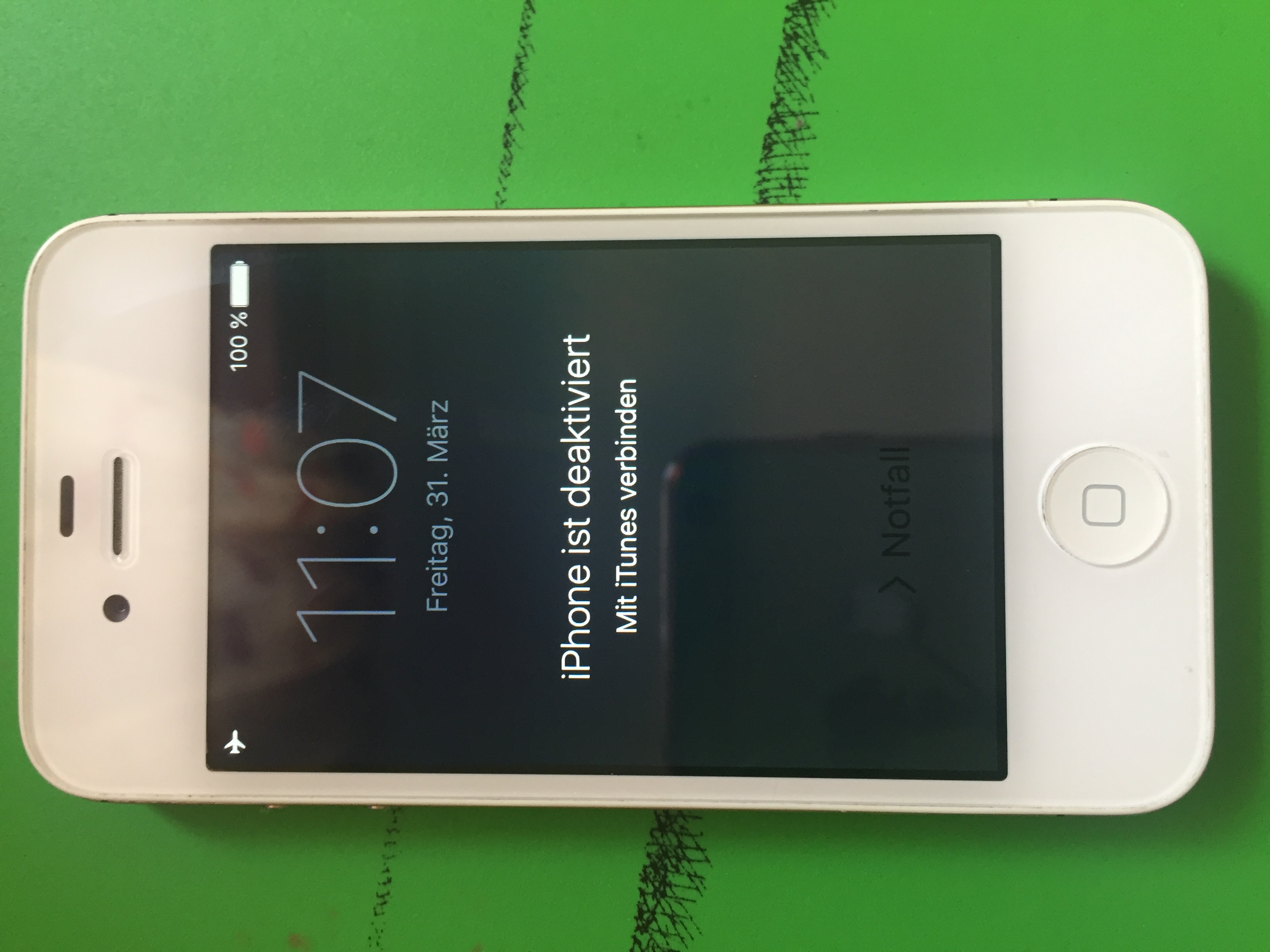 IPhone 4s ist deaktiviert,soll mit Itunes verbunden werden, geht nicht da Flugmodus eingeschaltet.