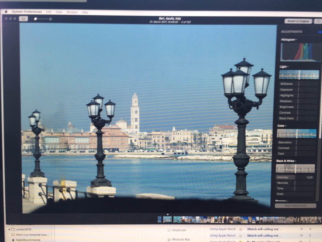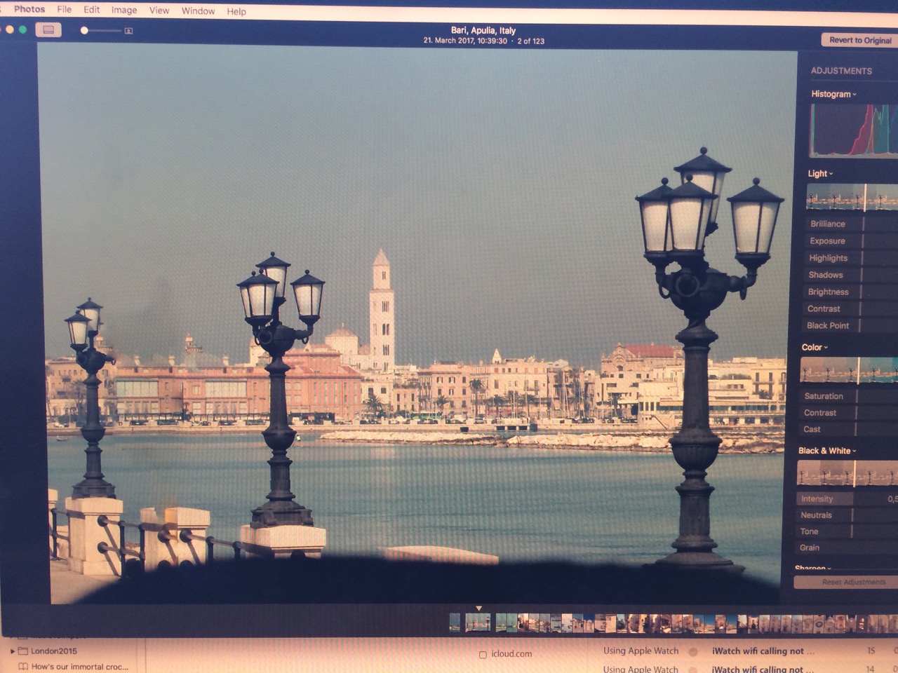 Hier ist ein Beispiel: Ein Foto in der grellen Mittagssonne aufgenommen, wie es in Fotos angezeigt wird, oben mit Night Shift und unten ohne.