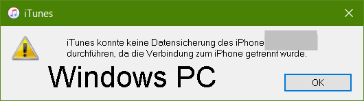 iTunes - Backup: Verbindung zum iPhone getrennt