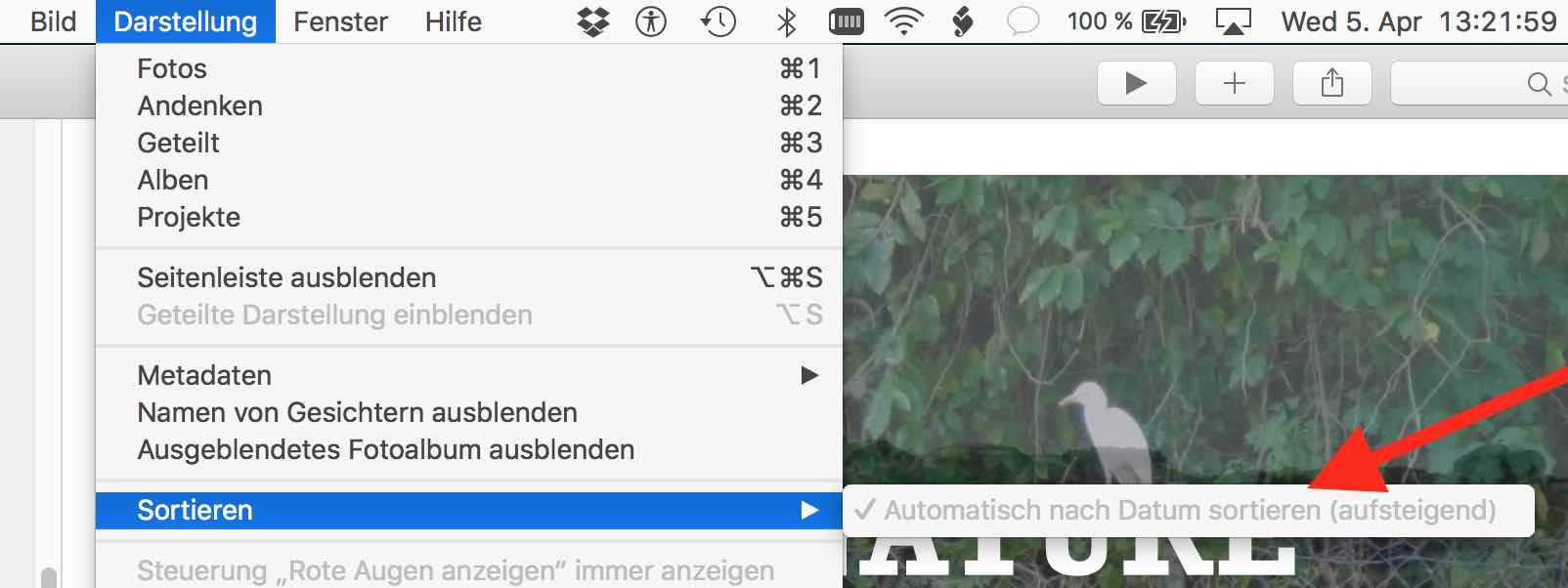 Ich kann ein Album as Andenken anschauen, wobei die Reihenfolge übernommen wird, indem ich das Album umsortiere und dann "Als Andenken anzeigen" klicke. In dieser Ansicht wird die geänderte Reihenfolge übernommen, z.B. wenn ich die Fotos nach dem Titel sortiert habe. Aber sobald ich das anzeigte Anden sichere und mit "Zu den Andenken hinzufügen", werden die Fotos wieder aufsteigend nach Datum umsortiert. Das scheint die Standardsortierreihenfolge für Andenken zu sein, die nicht geändert werden kann.