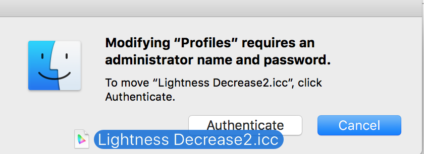 Ich kann kein neues icc-Farbprofil in meinen Ordner HD/Library/ColorSync/Profiles einfügen. Es erscheint ein "gesperrt" Symbol obwohl ich Admin bin.