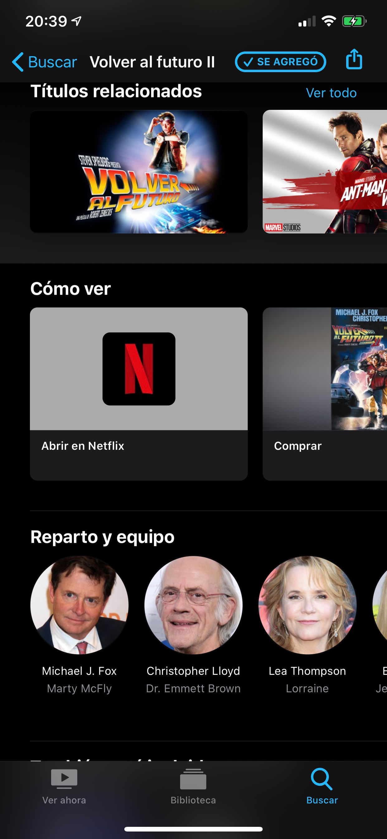 Si bajamos hasta la sección Cómo ver, nos daremos cuenta que se nos presentan varias opciones, siendo la primera, en este caso, Netflix, seguido de la posibilidad de Comprarla en iTunes, utilizar HBO GO o Prime Video.