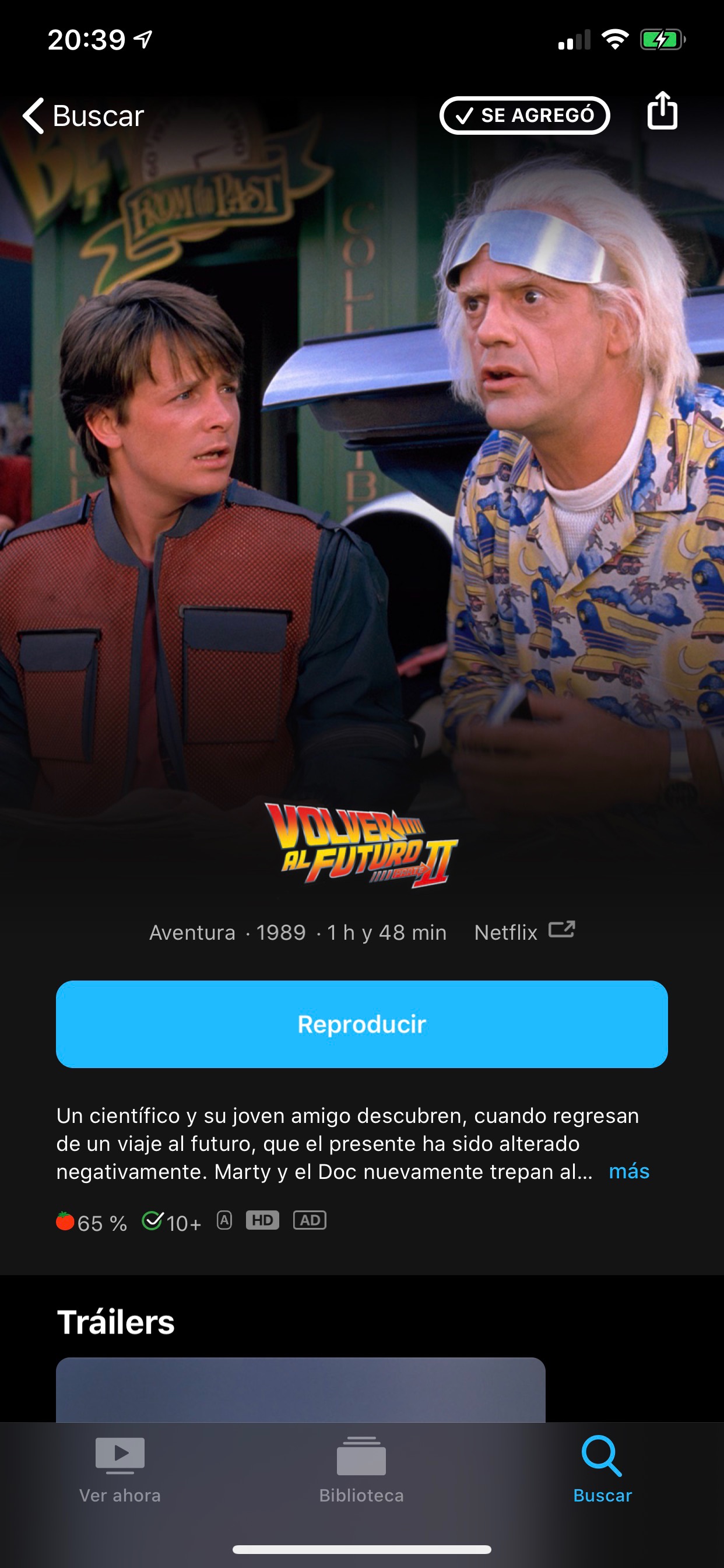 Podrás notar a primera vista, que me aparece la opción de Reproducir y al lado de la duración me aparece que utilizará Netflix.